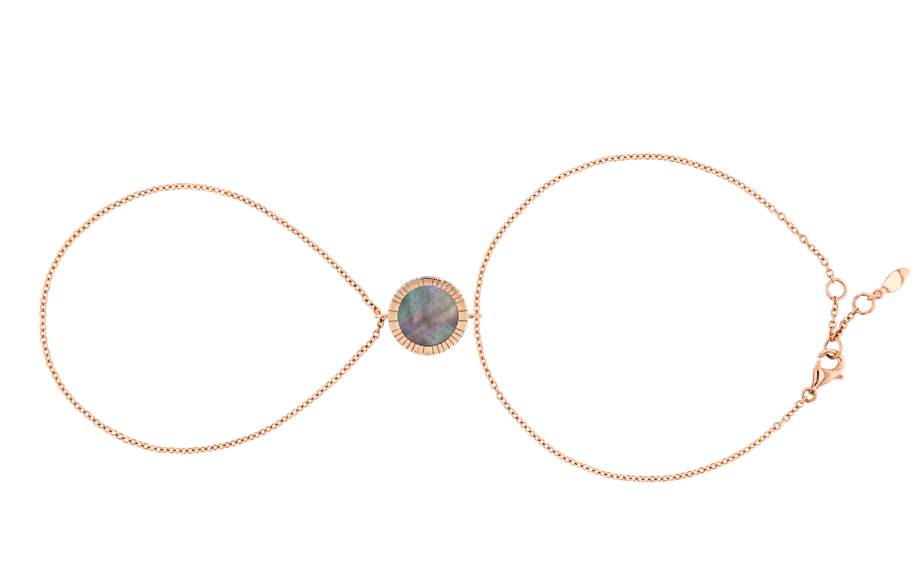 Un Cœur d’énergie dans son écrin tout en rondeur en or rouge 18 carats et nacre grise*, pour une bague de main originale. Un bien-être exceptionnel grâce aux bienfaits de l’AcuLumière™!